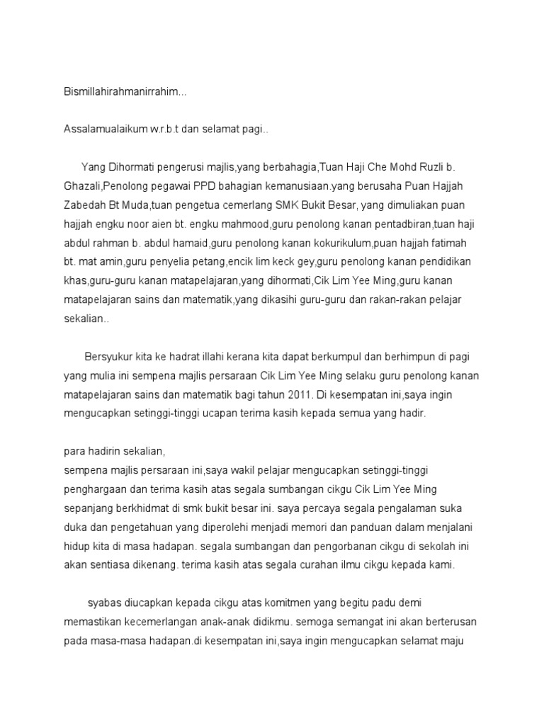 Contoh Teks Ucapan Wakil Murid Untuk Majlis Persaraan Pdf